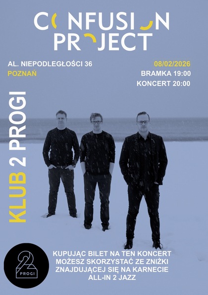 Confusion Project przybywa do Poznania by zaprezentować swój nowy, niewydany jeszcze materiał IDENTITY. Prog-jazzowe trio z Trójmiasta znane z koncept-albumów, takich jak PRIMAL czy LAST, tym razem sięga po.... polski folklor, aby wpleść jego elementy w charakterystyczną dla siebie muzyczną opowieść.